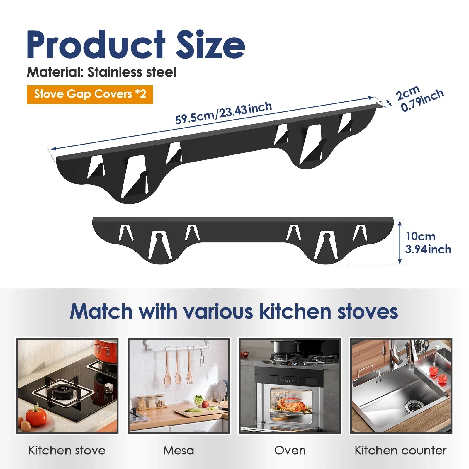 2Pcs Stainless Steel Stove Gap Cover Heat Resistant Kitchen Oven Gap Filler Rustproof Stove Guard for Home Kitchen Accessories