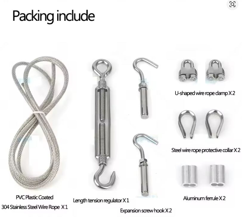 Stainless Steel Cable Wire Kit can get a range of heavy duty task done,including outdoor cable decking railing kit,DIY balustrade wire,indoor stair railing,garden wire,fen gate cable,outdoor lights strings hanging,sun shade sail cable,clothes line wires,hanging wire,trellis wire,wisteria wire,grapevine wire,gate wire...